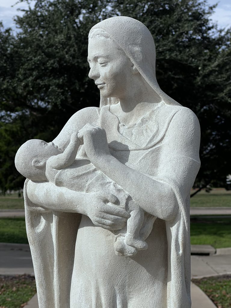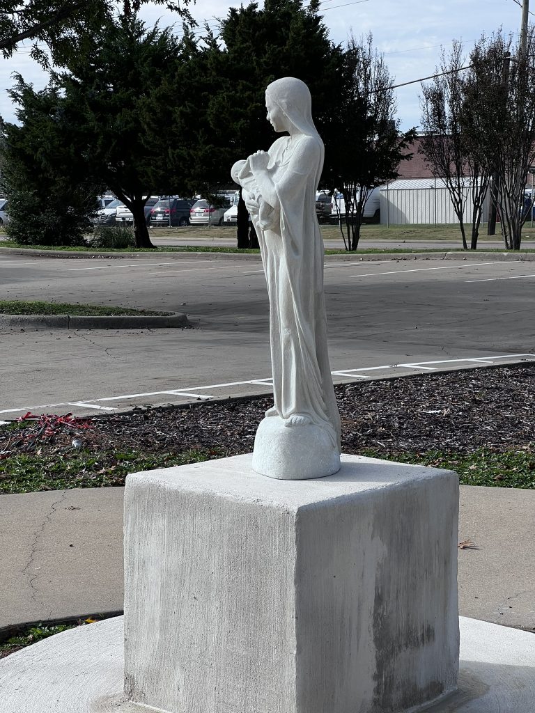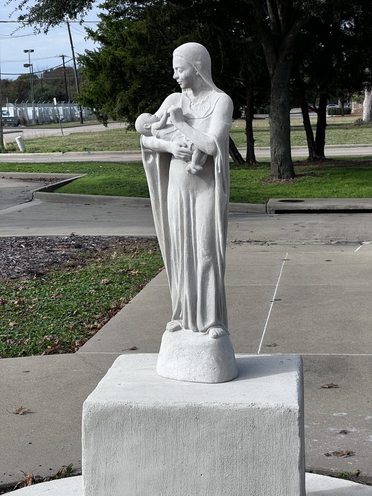 This project is a limestone, 1/2 life sized Madonna and Child for a Rachel garden for a church in Texas. Scroll down for images of the work in progress. Installed in November of 2025. Here are finished pictures. Scroll down for step-by-step images of the entire process from model to cast plaster to stone.