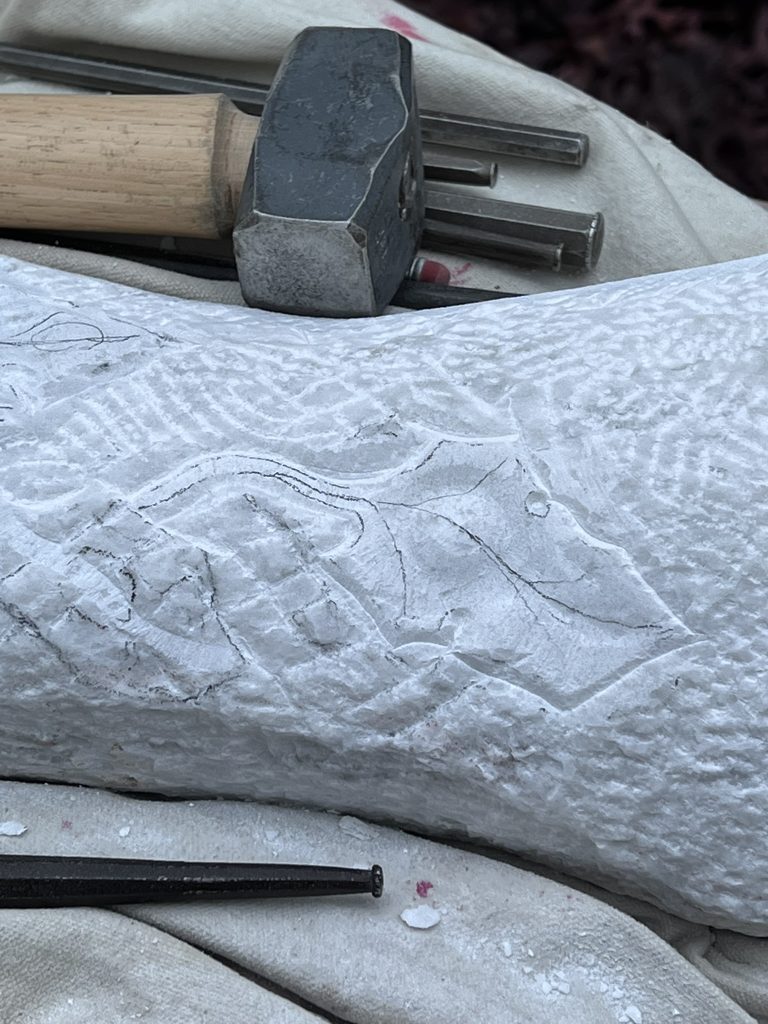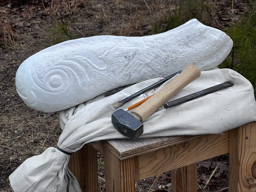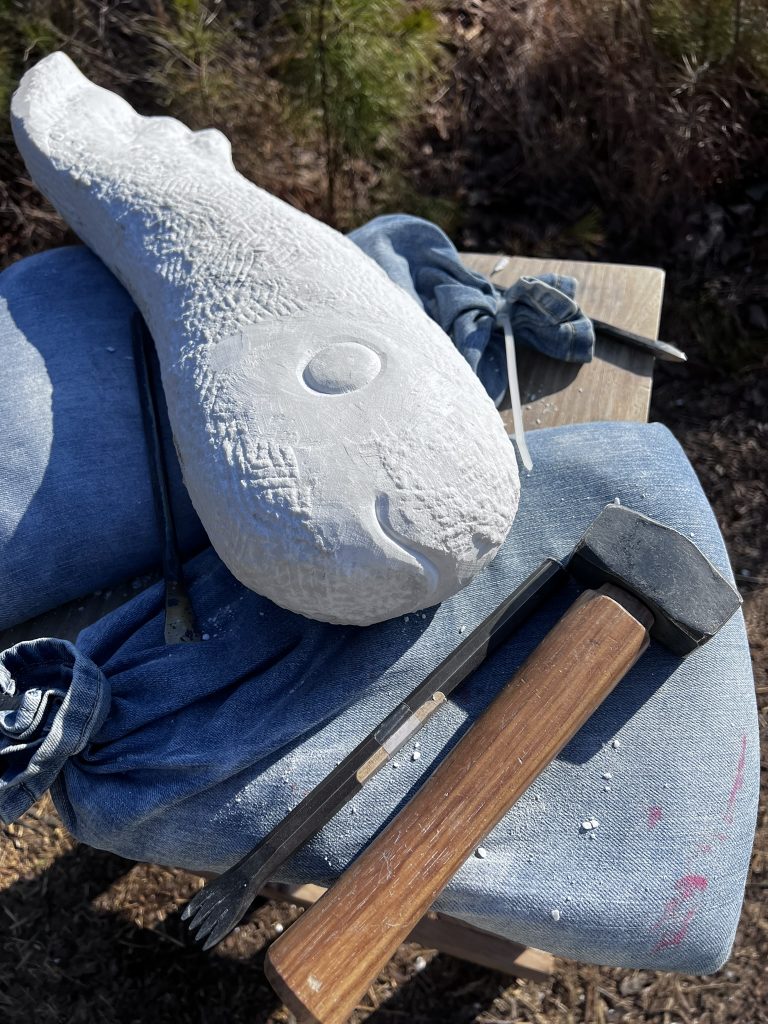 Fish in Alabama Marble. This project is a companion to Fish in Soapstone. When I started working with soapstone from the Alberene soapstone quarry in Schuyler, VA, I made a fish out of a sample block of soapstone. Last year, I picked up some marble from AM3 Stone in Sylacauga, AL, and this is my test project of their marble. I look forward to offering Alabama marble as an option for commissions!