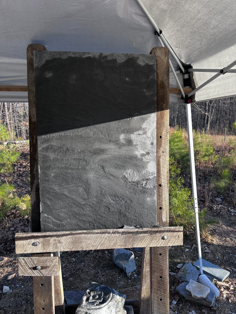 Pictured below: The layout and in-progress shot of cleaning up the surface and wet-sanding it.